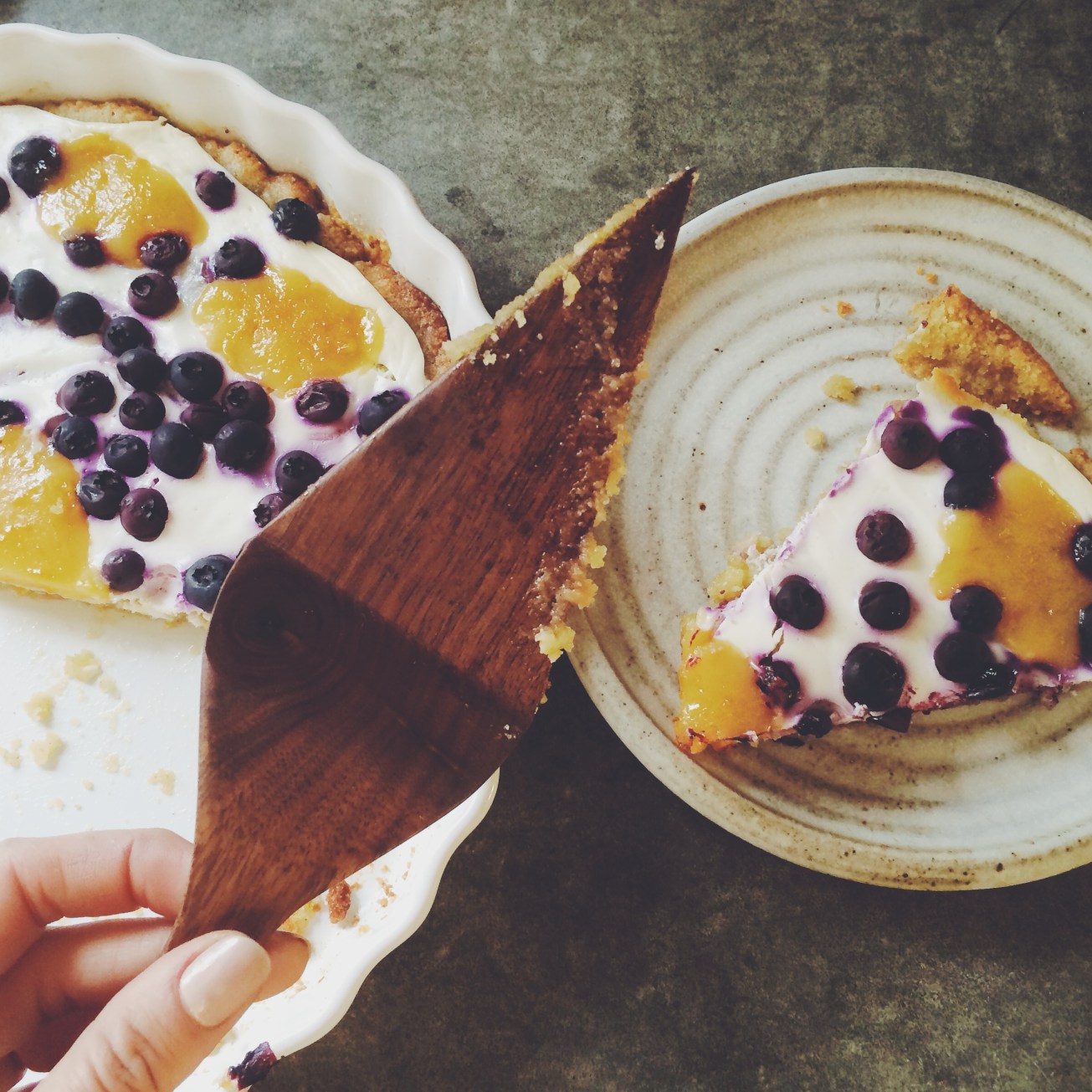 Lemon curd blueberry tart with almond flour crust