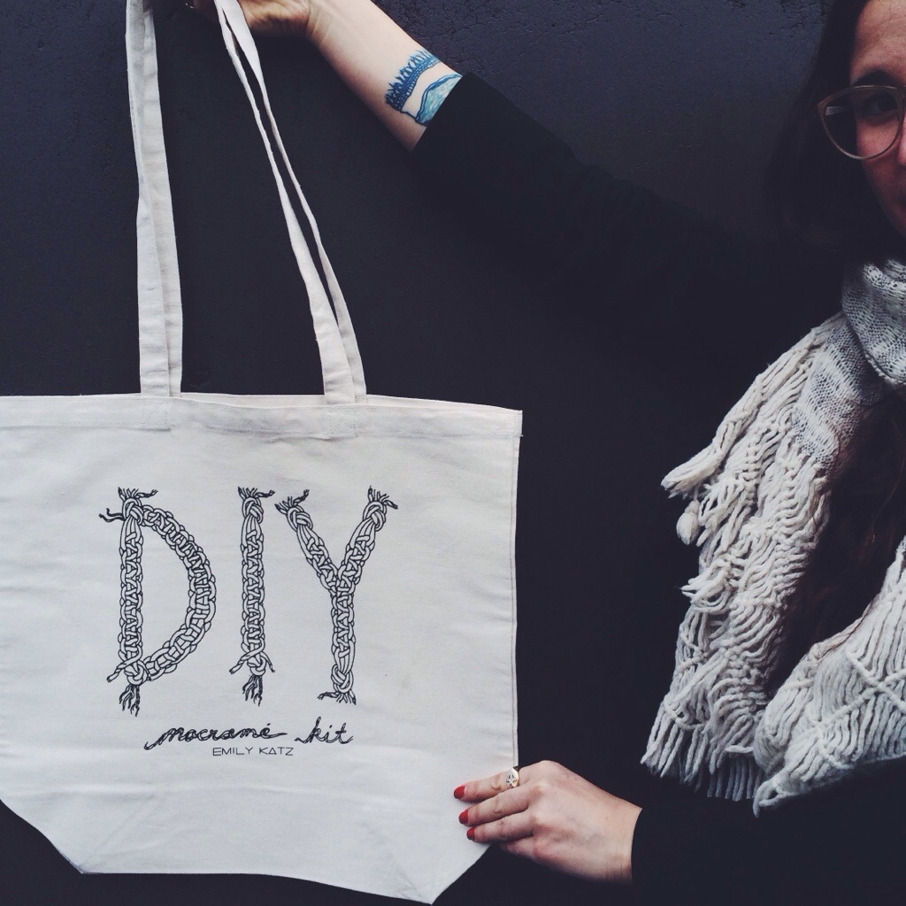 For the tour, I drew and designed tote bags that each of my macrame students would receive as part of their class. They were printed by Adam at Golden Rule Design.
