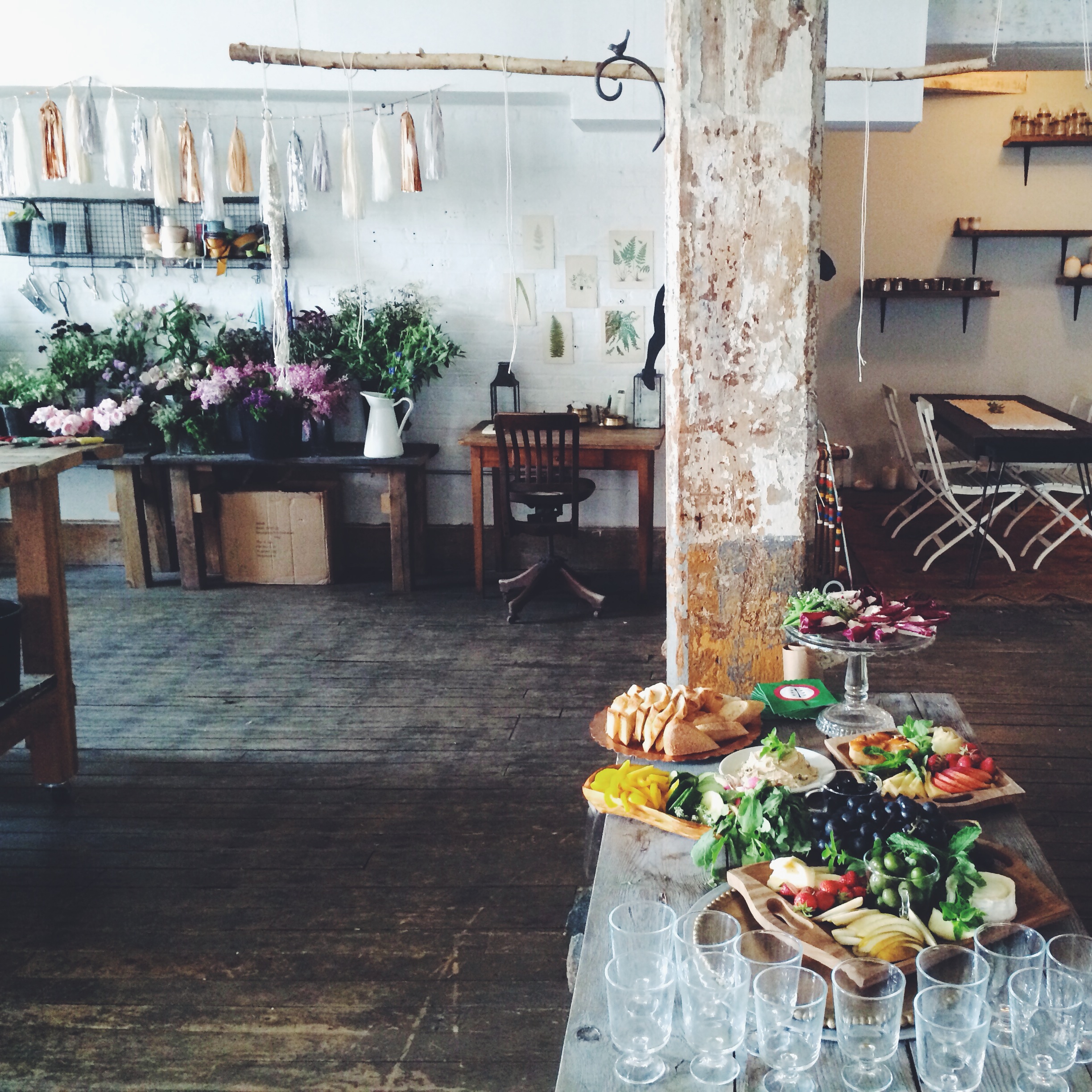 The class was held in her beautiful Greenpoint studio. We gathered flowers and food from the farmers market and put together a lovely spread for the ladies who came to take the class.