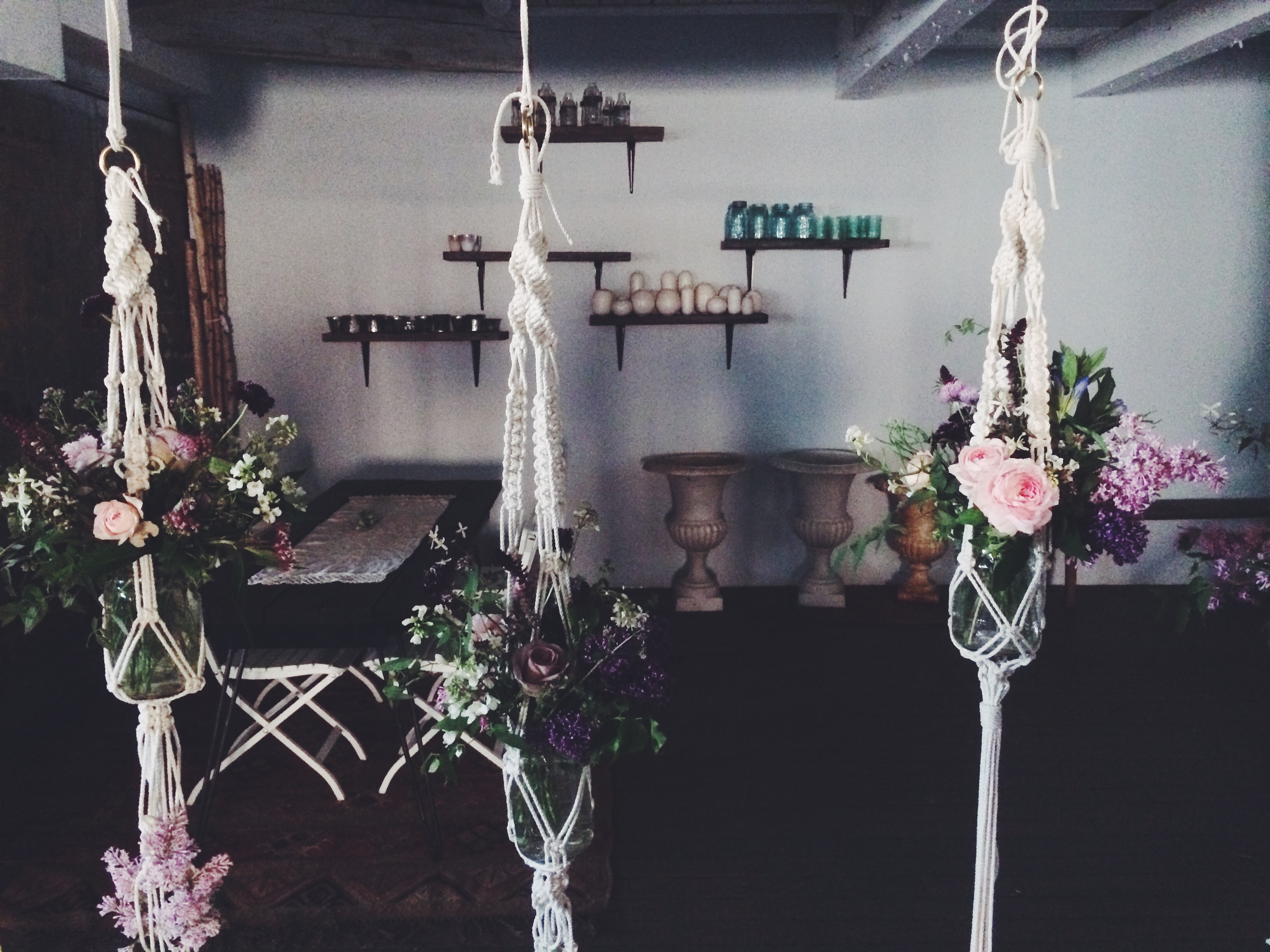 The workshop began with introductions, while I finished preparing rope for everyone. I tend to give people the basic lesson, and then depending on skill level, each person makes their own special unique plant hanger. It was extra fun this time to collaborate with Liza with the flower portion. I learned a few things too!