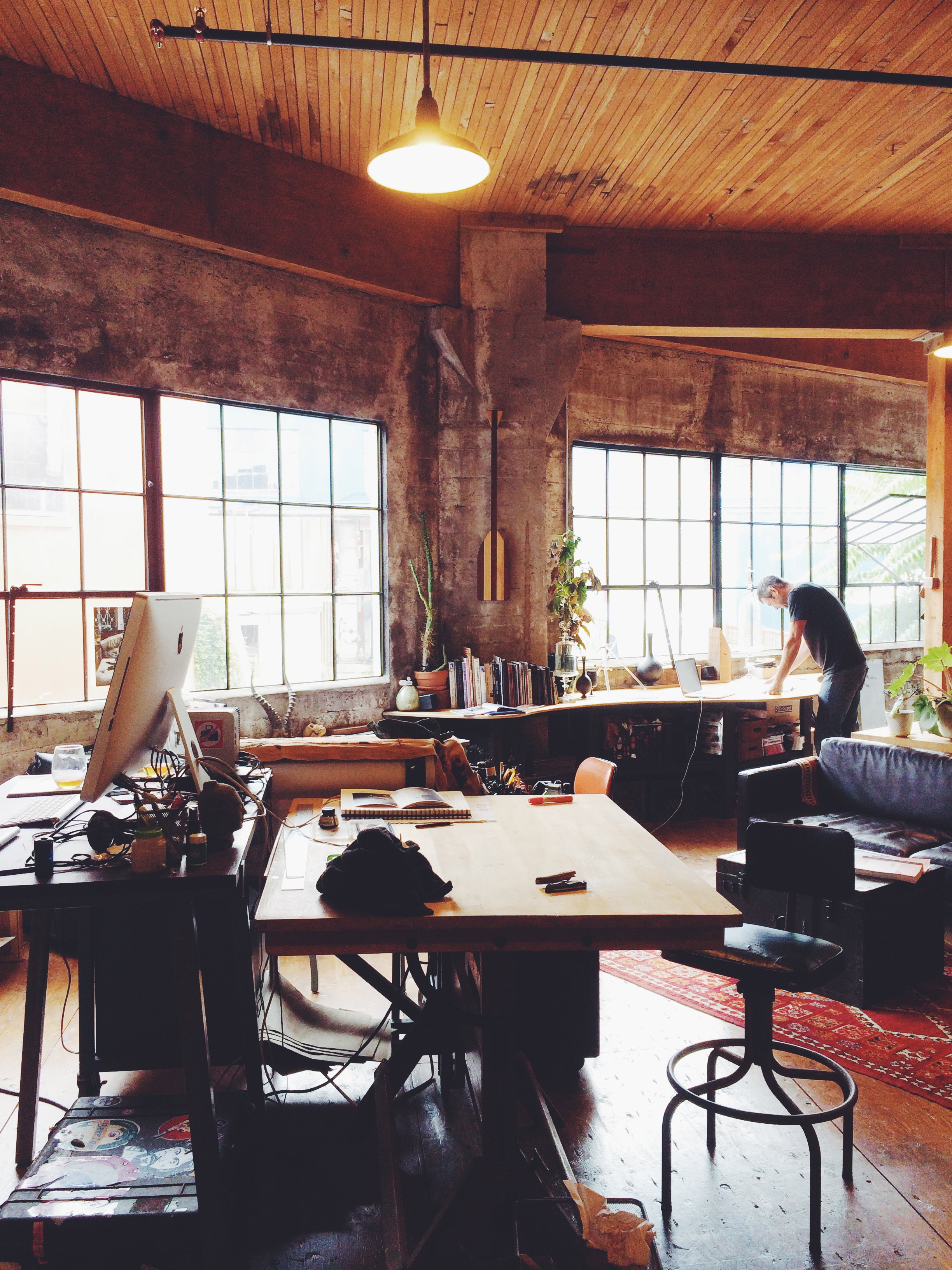I toured many of the studios of my neighbors to give you a sneak peek into the workings of what goes on in our building. From bag designers, a screen printer, photographers, to a glass artist, the variety of cool things happening in here is exciting and inspiring. Also, we all love plants. Plants and nice seating. Seems to be a trend…