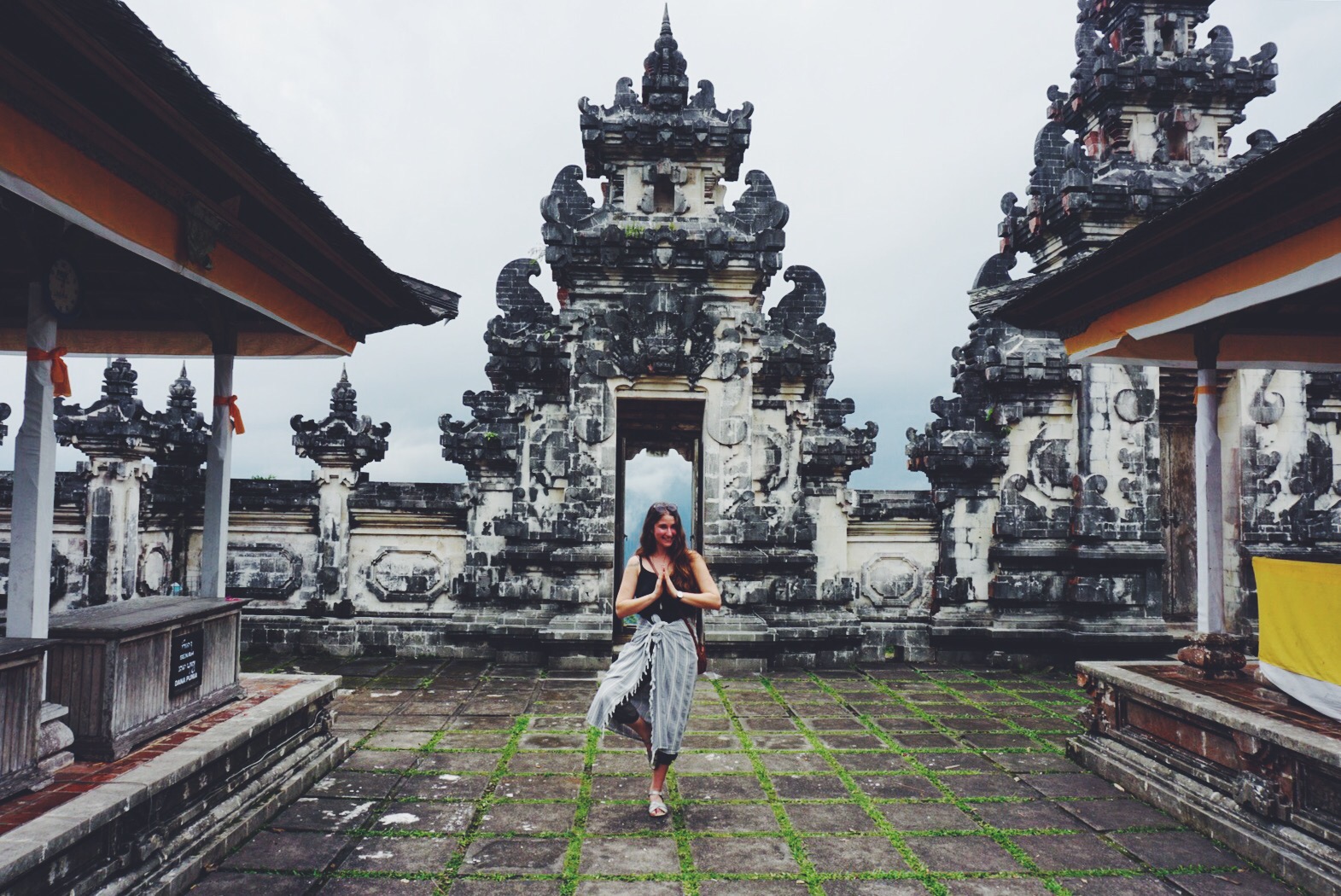Later in the day we visited Pura Luhur Lempuyang, a famous temple on top of a mountain with over 2000 steps. We met monkeys. We sweated up the road, and laughed on the way down. The temples were immense and grand and peaceful. Stone carved by hand, of dragons and other spiritual guardians. A beautiful guide let us into one of the larger temples and insisted that I make a yoga pose when he took my photo. His smile had a purity to it that made me immediately comfortable in his presence. At the top of the mountain there is supposed to be an incredible view, but we found ourselves climbing into the clouds. We also came upon a ceremony and quietly watched awhile. Everyone had rice stuck to their foreheads.