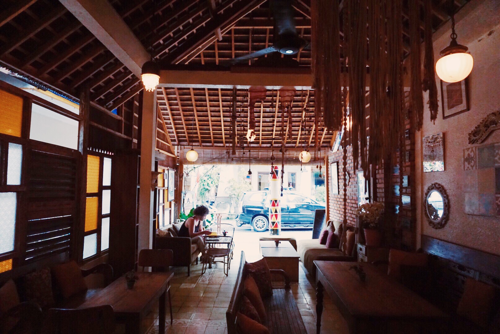 The pad thai was good, but the music was better at the Art Kafe. We stumbled into this cute place that is of the Monkey Forest Road when the sky threatened to dump buckets of rain on us. We were originally seduced by the BUY ONE get ONE mojitos, but they got us with the classic rock on the stereo and the fiber art and stained glass.