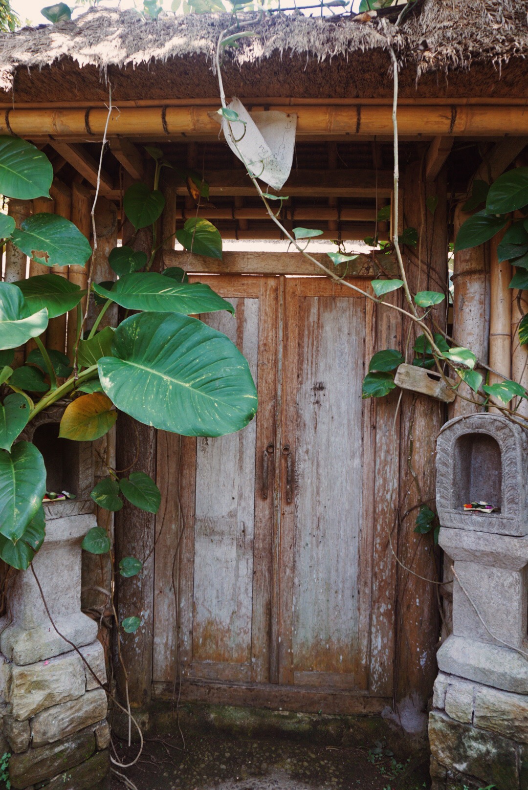 Once we landed we were picked up by our driver Adi, who took us the 2.5 hours to Amed in his van. Along the way we stopped and tried Luwak coffee, which comes out of the digestive systems of the cutest little furry creatures, and we toured a traditional Balinese weaving town. I loved the doorways, the plants, the magical little moments everywhere you turned. These things continued to show up for us the entire trip. Arriving at our destination, the excitement of the trip settled in on us. We were met with a welcome drink of fresh watermelon juice with a plumeria blossom in it. The details. Everywhere. We changed into our bathing suits and laid by the pool but we couldn’t relax. Our excitement about surprising our friends could not be contained, and we hadn’t really planned what we were going to do or how it was all going to go down. We didn’t even know when they were coming back to the Villa from their day of wandering the village. It didn’t take long though. We were inside the house when they came in, and shouting with glee welcomed us to Bali.