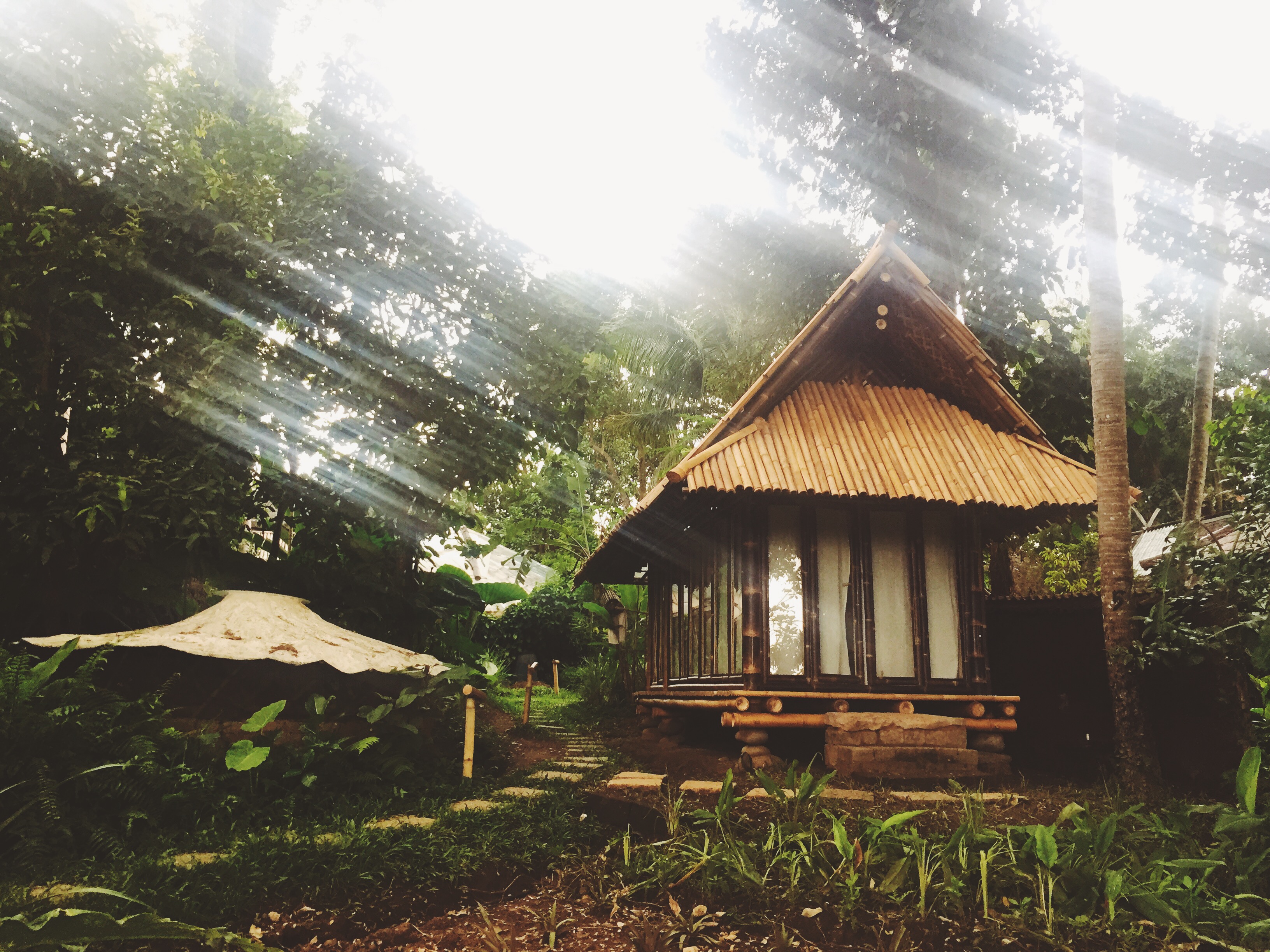 We were transported. Bambu Indah is a beautiful resort compound where they grow their own food in the most insane green houses, the pool is actually a river flowing through the property, and the Joglos (the wooden houses) are all unique and special. I wish we had known about this place when we booked out trip. We ordered gin and tonics (seems to be the drink of the trip!) and settled into a seat with a view of the rice paddies. Founded by John and Cynthia Hardy, it is a utopia of sustainability and magic.