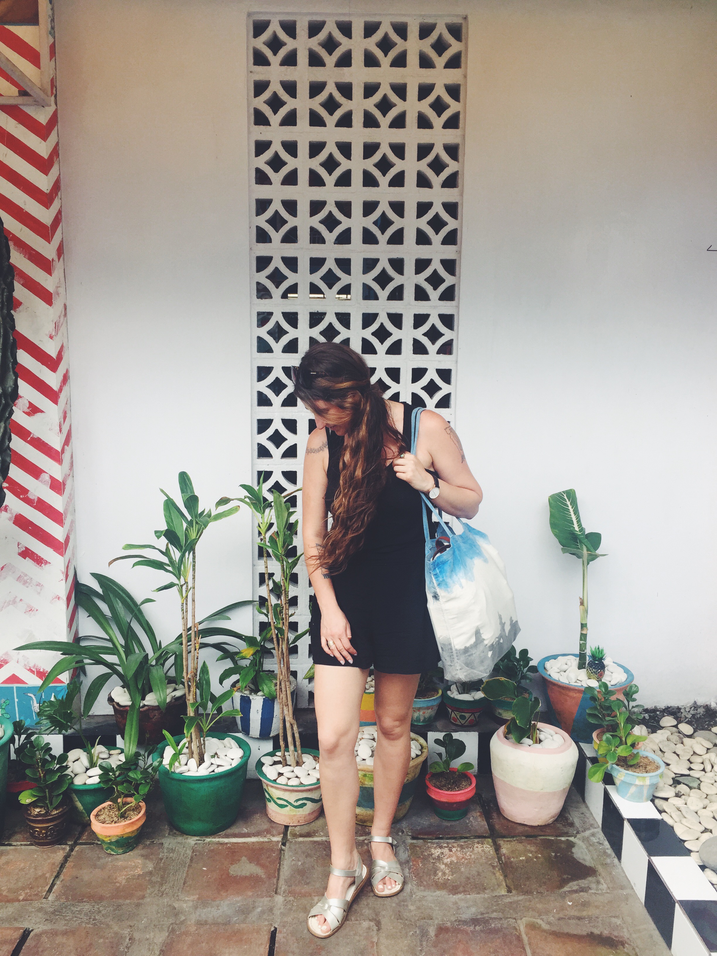 Plant shadows and my Hackwith Design House bathing suit.