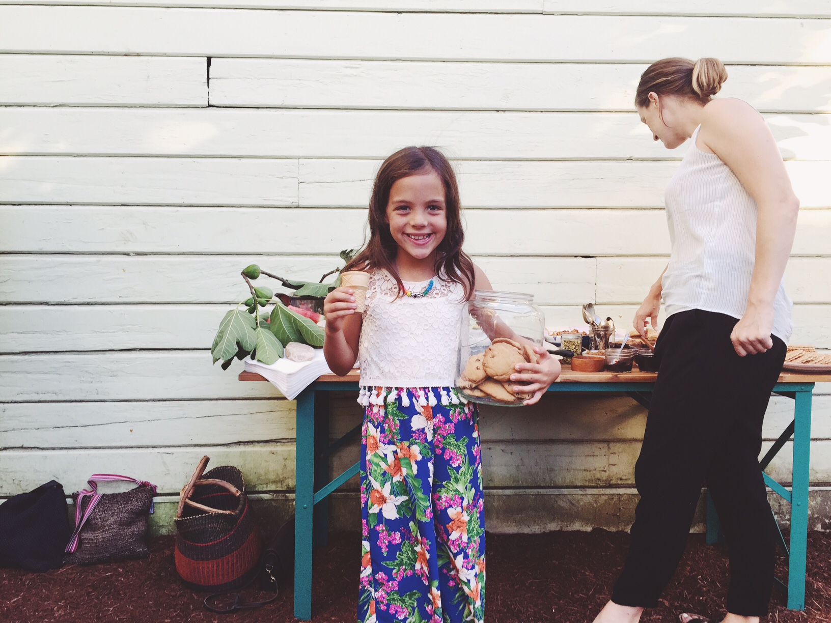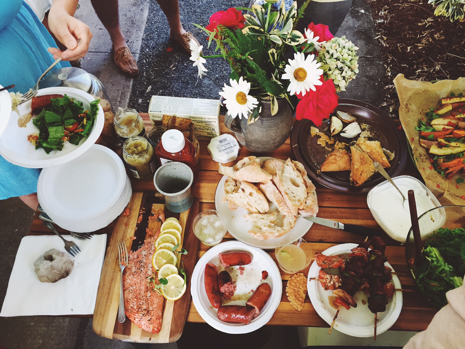 I picked up some of my FAVORITE spanakopita from World Foods, and I baked some salmon from the amazing salmon CSA we are a part of. This one was so sassy! She dragged everyone to the front yard and made up a little dance performance on the spot. Even the little dogs ran free.